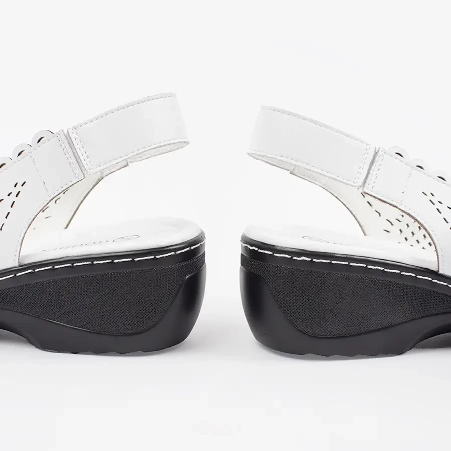 Objevte jedinečný styl a pohodlí díky bílým klínovým sandálům od značky Goodin! Tyto klasické sandály jsou skvělou volbou pro každou ženu, která si chce během teplých dnů užít módní vzhled. Vyrobeny z vysoce kvalitní ekologické kůže kombinují estetiku s ekologickými hodnotami.