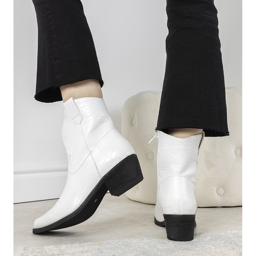 Inna marka Bílé kovbojské boty ve vzoru krokodýlí kůže Aurore bílý
