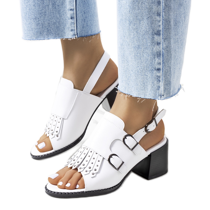 Inna marka Bílé kožené sandály se stopkou Zand bílý