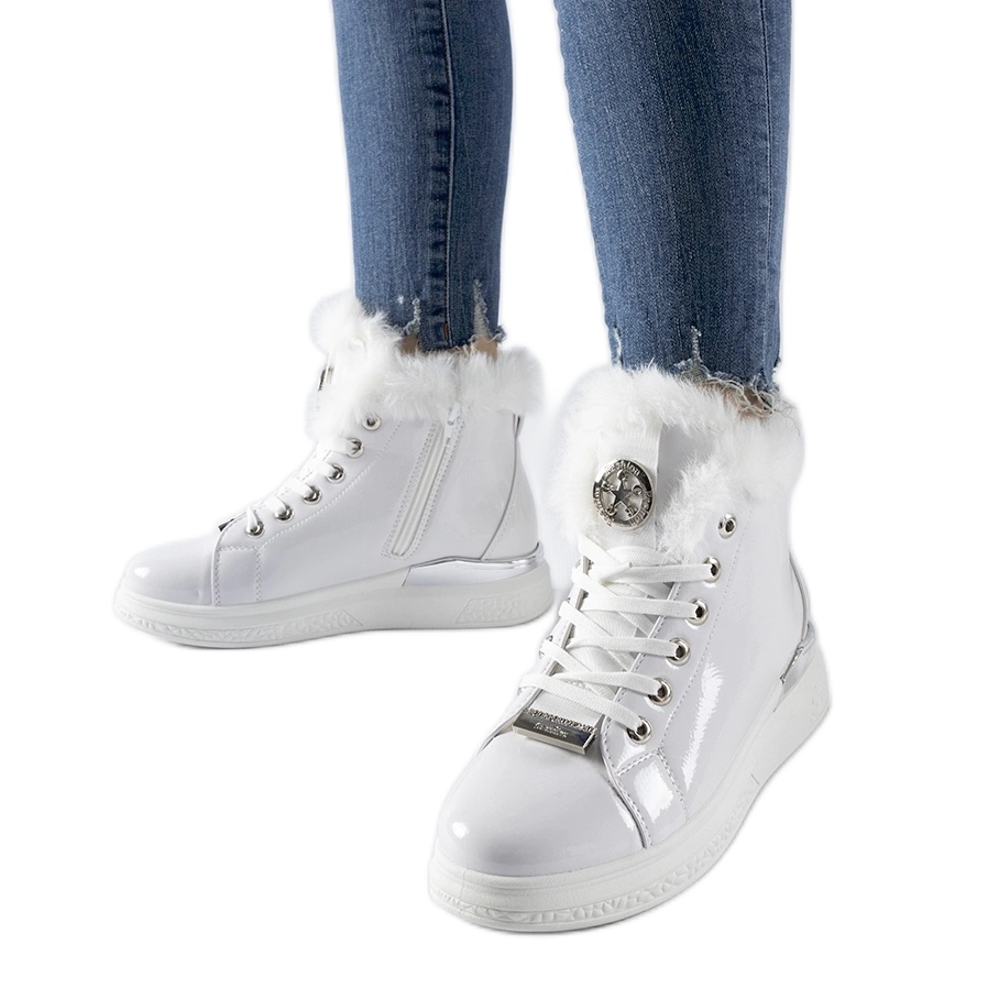 - Modelka: 3007-6 Bílé lakované tenisky s kožíškem