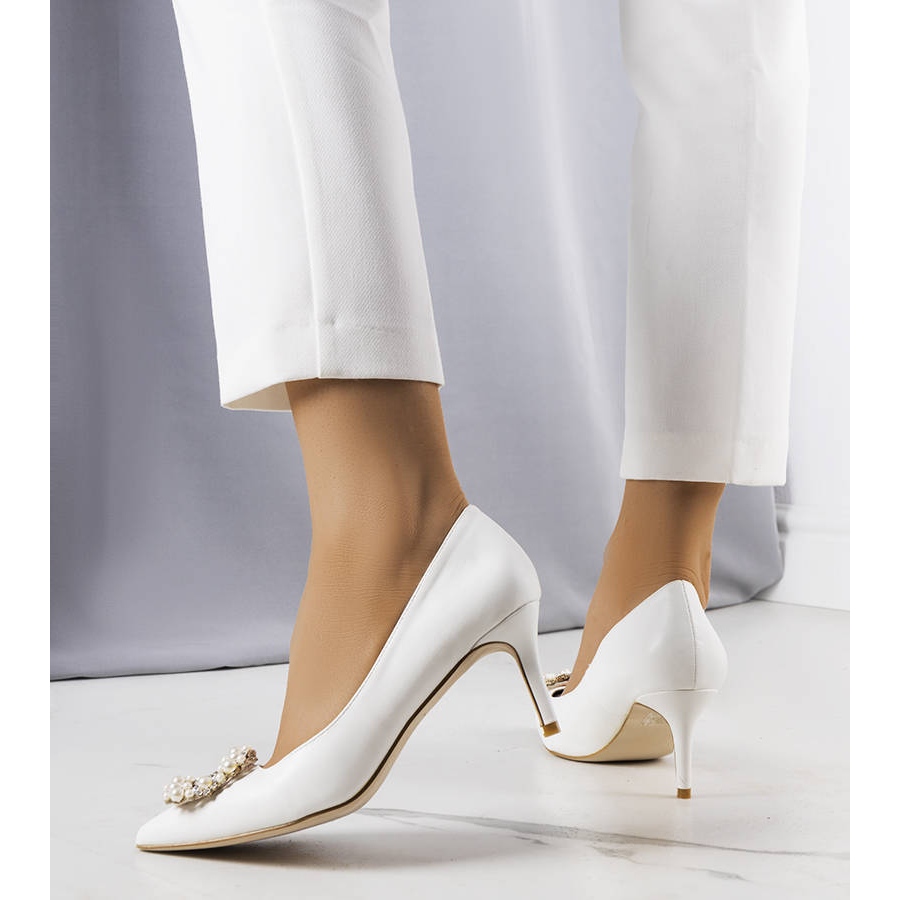 BM BM Bílé lodičky na vysokém podpatku značky Lukis bílý
