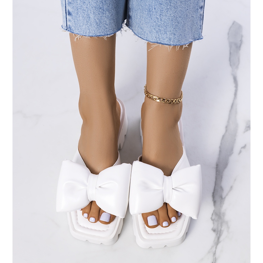 Sladká mašlička jim dodává jemné kouzlo a kulatá špička dělá žabky nejen módními, ale také velmi pohodlnými na nošení. Bílé žabky Platt jsou perfektní volbou pro každodenní výlety, procházky po pláži nebo výlet mimo město. Kombinace elegance a ležérního stylu je předurčuje k mnoha letním outfitům.