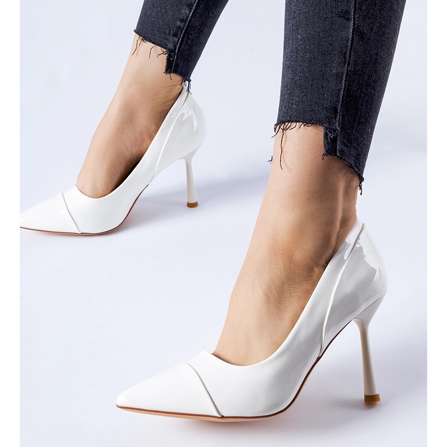 Bílé patentované vysoké podpatky Inferiore jsou perfektní volbou pro každou ženu, která chce spojit eleganci s pohodlím. Díky nazouvacímu designu se tyto podpatky neuvěřitelně snadno nazouvají, což z nich dělá praktické řešení pro každou příležitost. Vyrobeny z vysoce kvalitní lakované ekologické kůže, zajišťují nejen odolnost, ale také atraktivní vzhled.