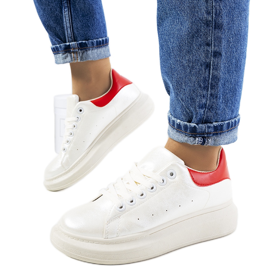 Bílé perleťové dámské tenisky Neera bílý červený
