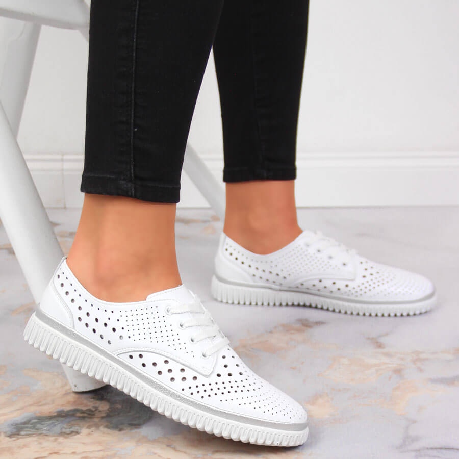ARTIKER Bílé prolamované kožené dámské boty Artiker bílý
