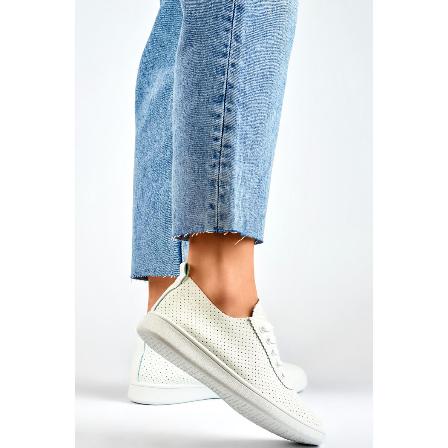 - Modelka: Bílé prolamované dámské tenisky