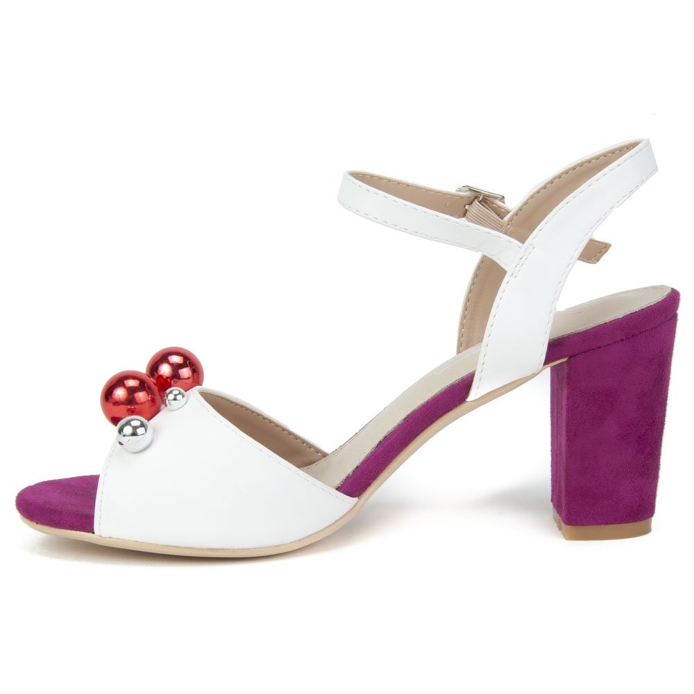 Model je dostupný v atraktivních barvách: bílé a růžové, což umožňuje jeho snadné sladění s různými styly. Plastová podrážka navíc zaručuje lehkost a pohodlí při nošení a výška podpatku 8 cm zeštíhluje postavu. 1 cm vysoká podešev zajišťuje stabilitu a mandlový tvar špičky dodává ženskost a eleganci.