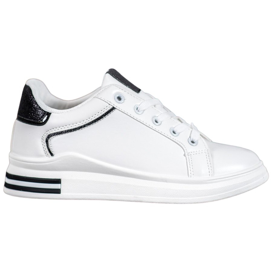 Bílá povrchová úprava modelu je decentně zvýrazněna černými vsadkami, což jim dodává originální charakter. Kulatá špička a měkká, vestavěná pata zaručují pohodlí a volnost pohybu a syntetická podrážka s nášlapem poskytuje vynikající přilnavost.