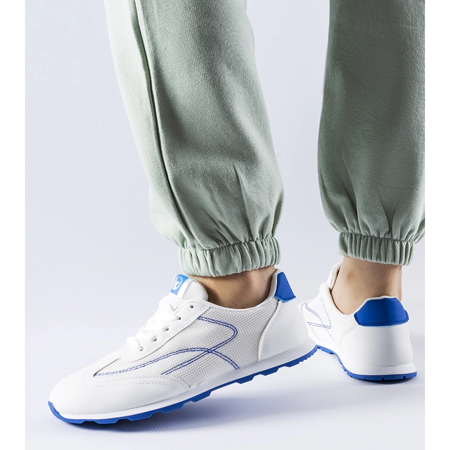 Model A-42 osloví každou ženu, která oceňuje moderní styl a stará se o podrobnosti. Kulatá špička a nízká výška boty způsobují, že tenisky dokonale odpovídají noze a přichycená spona zajišťuje dokonalé držení. Bílá je univerzální a snadno se kombinuje s různými stylizacemi a modrá podešev přidává celou postavu.