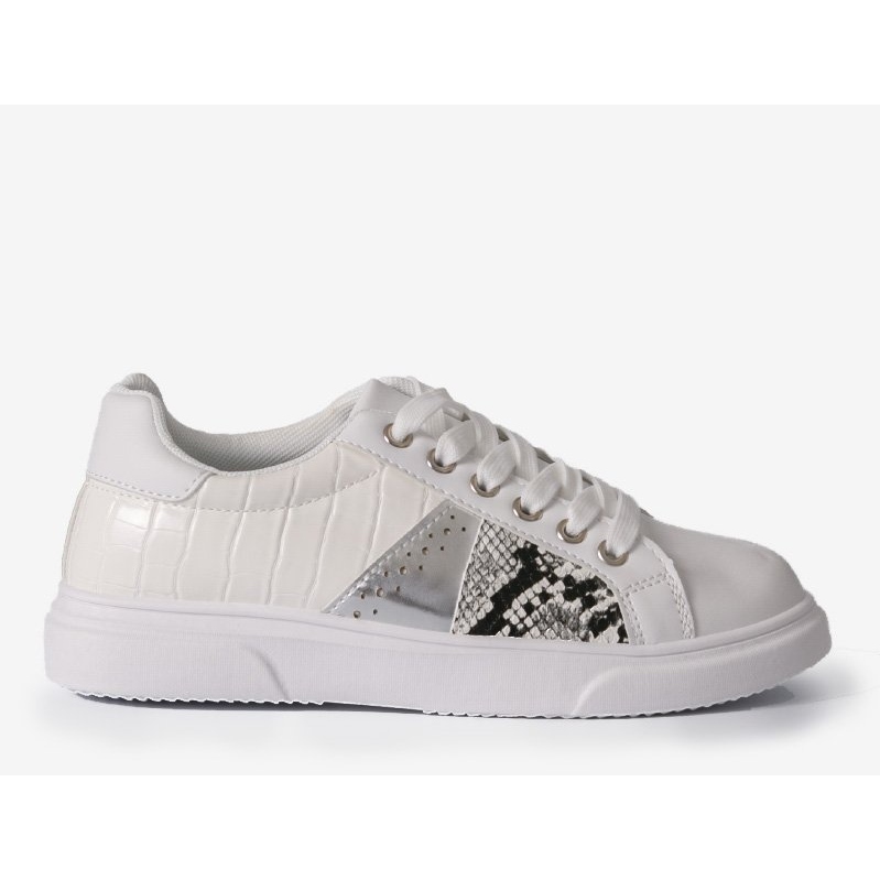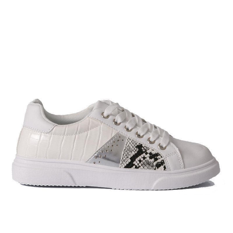 Stylové bílé dámské tenisky BK928-9 jsou jedinečným modelem, který dokonale zapadá do aktuálních módních trendů. Jejich hlavní předností je čistě bílá, obohacená o unikátní stříbrné vsadky a hadí motiv, které botám dodávají jedinečný charakter.