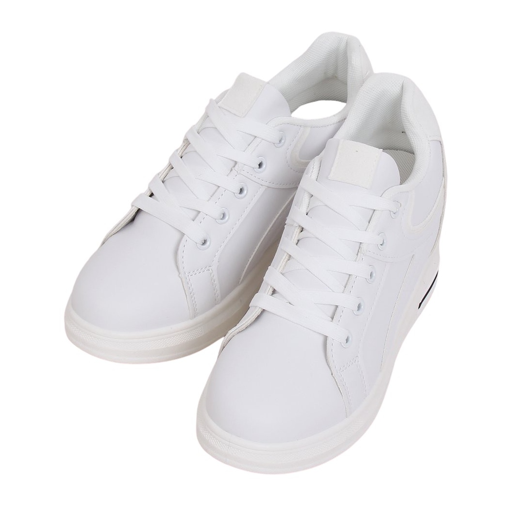 Objevte pohodlí a styl se skrytými teniskami na klínku BY-0370 v bílé barvě! Tyto módní dámské šněrovací tenisky jsou perfektní volbou pro ženy, které chtějí spojit pohodlí s elegancí. 8 cm skrytý klín dodává subtilní výšku a zároveň zajišťuje pohodlí při každodenních aktivitách.