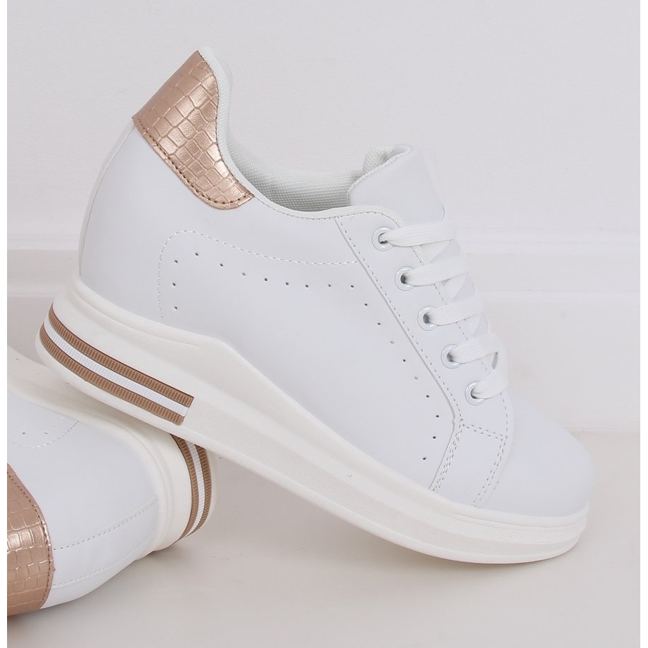 Inna marka Bílé tenisky MY-0367 WHITE / CHAMPAGNE na skrytém klínu bílý