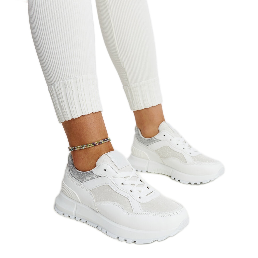 Inna marka Bílé tenisky na platformě se třpytkami Evelia bílý