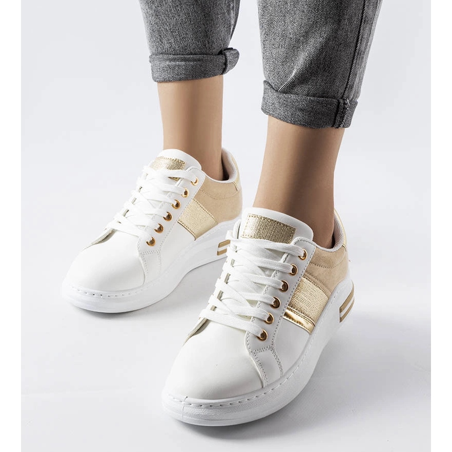 Deans - tenisky bílých žen s béžovými vložkami a zlatými akcenty