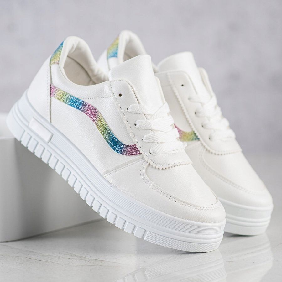 SHELOVET SHELOVET Bílé tenisky s třpytivou vložkou bílý
