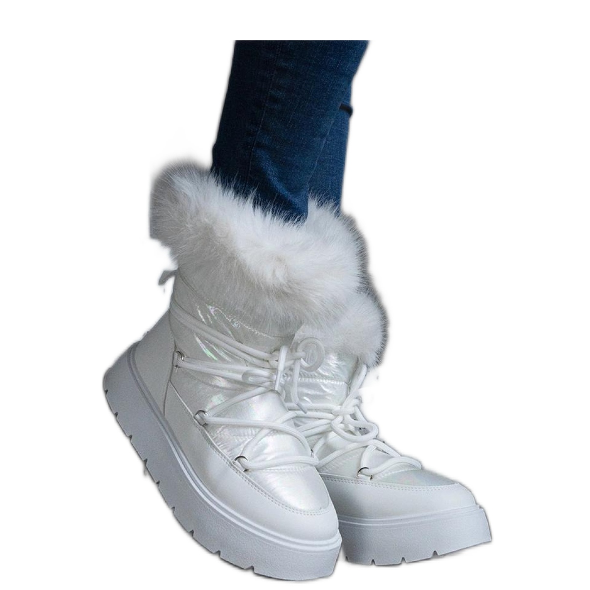 ** Bílé izolované sněhové boty s kožešinou - stylem a pohodlí pro zimní dny **