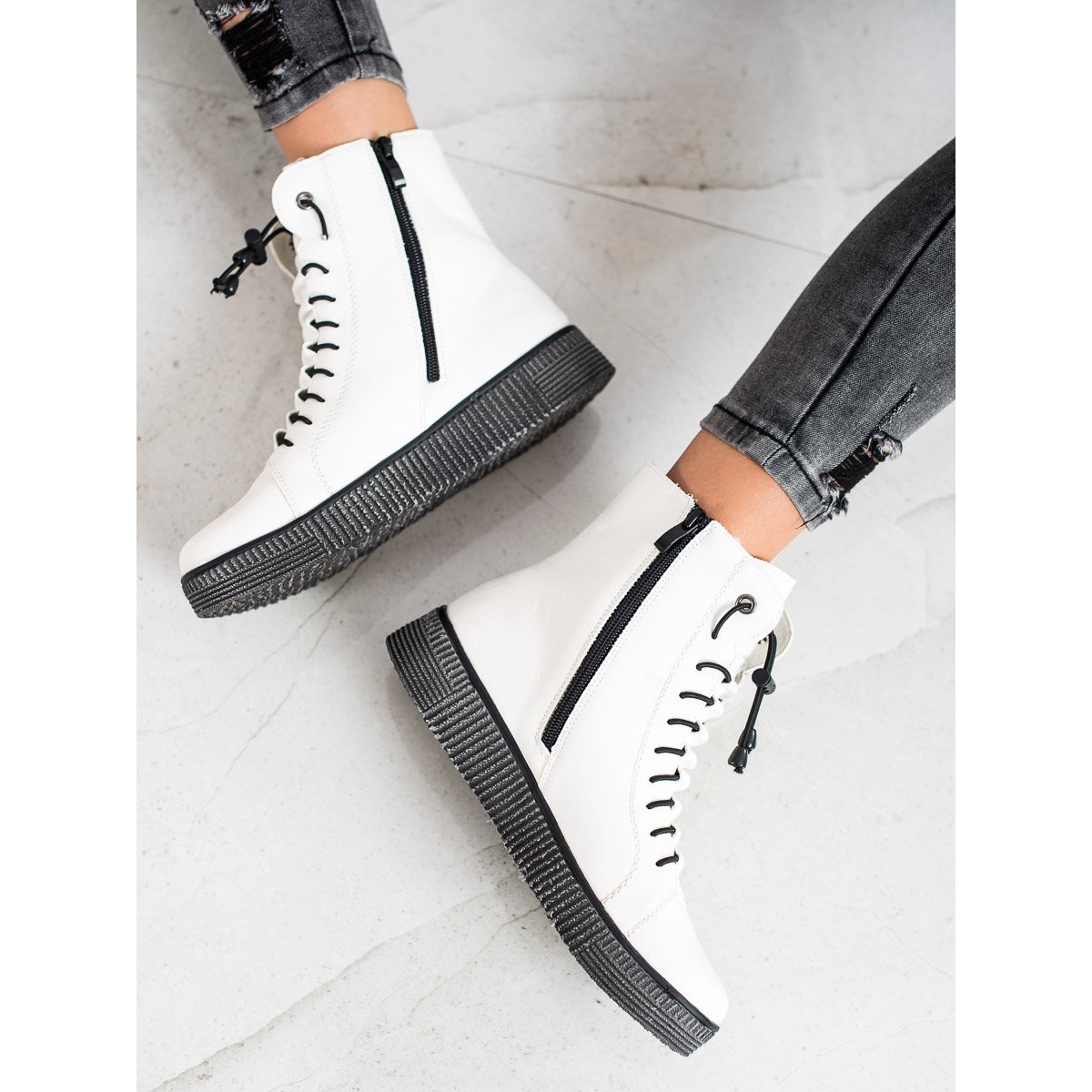 Seznamte se s bílými dělníky na plošinách od renomované značky SHELOVET - perfektní volbou pro ženy, které si cení stylu a pohodlí. Tyto módní kotníkové boty z kolekce KeeShoes jsou ideální pro každodenní styling a jejich univerzální design je v souladu s nejnovějšími trendy.