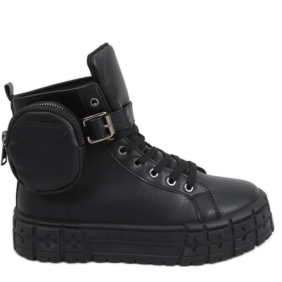 Vysoká podešev vysoká 4 cm zajišťuje pohodlí při nošení a zároveň dodává eleganci. Vnitřek bot je podšitý látkou, díky čemuž jsou pohodlné i při dlouhém používání. Tyto černé tenisky vyrobené z eko kůže nejen skvěle vypadají, ale jsou také ekologické.