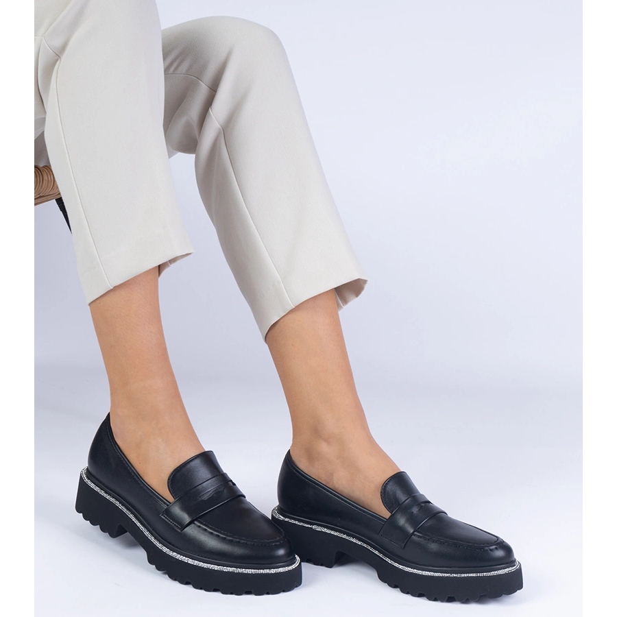Podrobnosti: Black Dámské mokasíny na silné podrážce černý