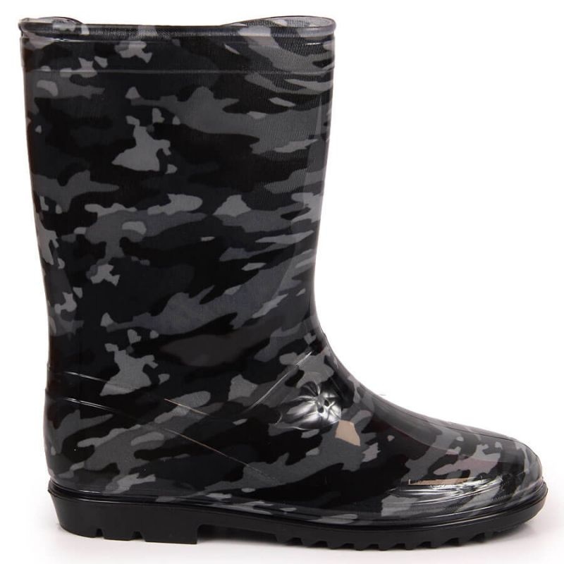 American Club Jr AM878B Wellies - černá, praktická a stylová obuv pro chlapce na deštivé dny. Vysoká horní část účinně chrání před smáčením a plastová výroba způsobuje, že galoše je lehká, odolná vůči vlhkosti a snadno se čistí. Interiér lemovaný textilním materiálem poskytuje pohodlí během delšího nošení.