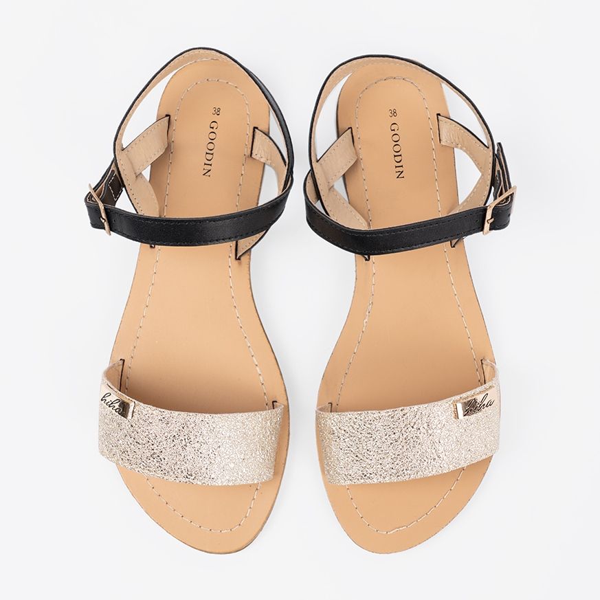 Goodin Goodin Black Golden Dámské ploché sandály zlatý