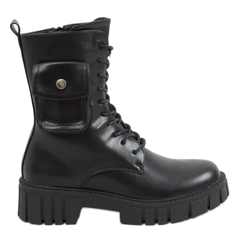 Představujeme dámské šněrovací kozačky - pracovní s kapsou v klasické černé barvě, které jsou perfektním doplňkem každého každodenního stylingu. Tento model vyniká nejen svým univerzálním střihem, ale také originálním akcentem v podobě praktické kapsy, která mu dodává jedinečný charakter.
