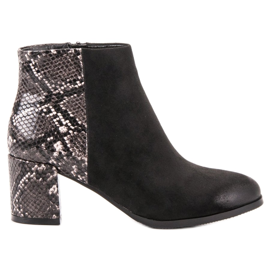 Poznejte černé kotníkové boty Vinceza v módním zvířecím potisku, které dodají punc elegance každému vašemu stylingu. Jejich nízký 6 cm podpatek efektivně prodlouží nohy a zároveň zajistí pohodlí při nošení. Díky zateplení se skvěle hodí do chladných dnů a střih po kotníky dodává eleganci.