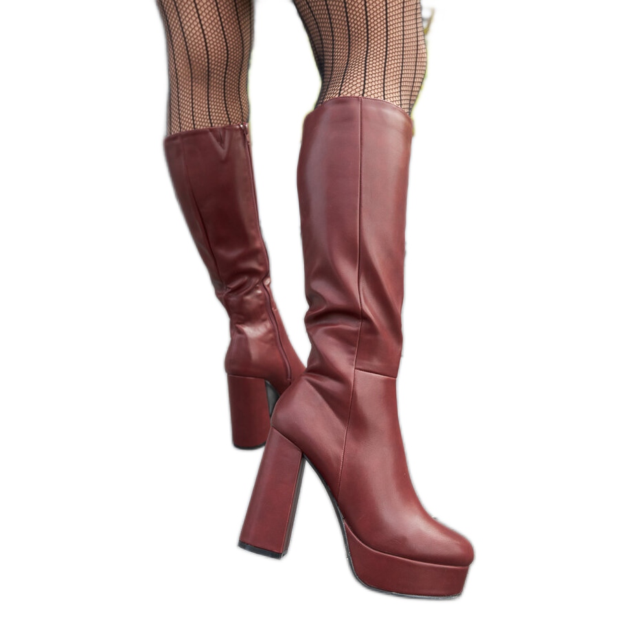 Inna marka Bordová platforma a kozačky na vysokém podpatku značky Zoccorino červené