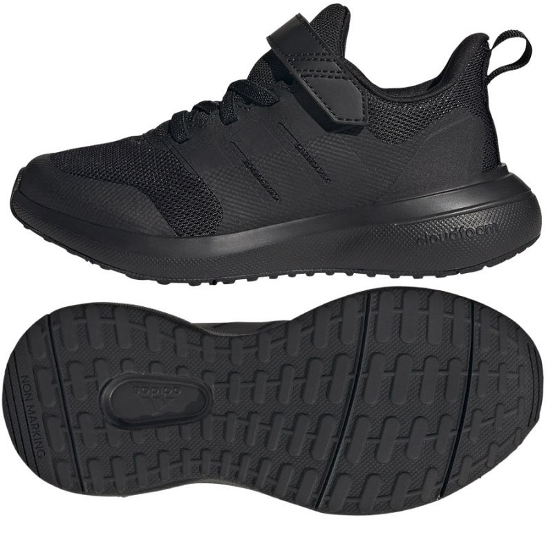 Boty Adidas Fortrun 2.0 El Jr (HP3118) - Funkční a pohodlná tréninková obuvi pro aktivní chlapce. Černý, nízký model kombinuje sportovní vzhled s praktickými řešeními: lehká, syntetická horní, prodyšná textilní podšívka a odolná gumová podešev zajišťují pohodlí a dobrou přilnavost na tvrdých površích. Snadné upevňovací suchý zip usnadňuje nasazení na sebe a logo charakteristického výrobce zdůrazňuje sportovní design.