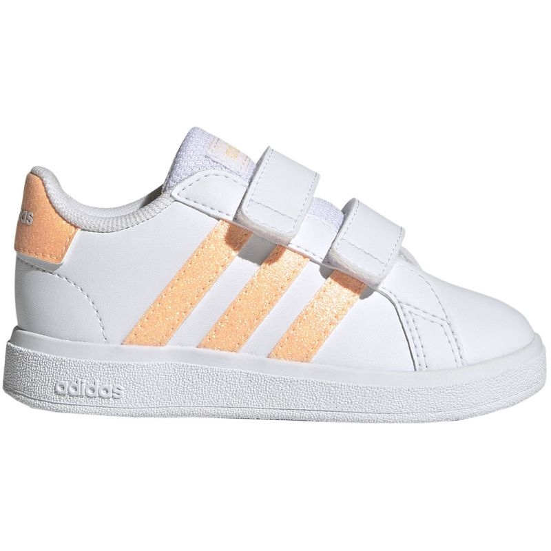 Objevte pohodlí a styl s Adidas Grand Court 2.0 CF v bílé. Tyto nízké boty určené pro nejmladší kombinuje klasický tenisový styl ze 70. let s moderním pohodlím, což z nich činí ideální pro každodenní hry a aktivity.