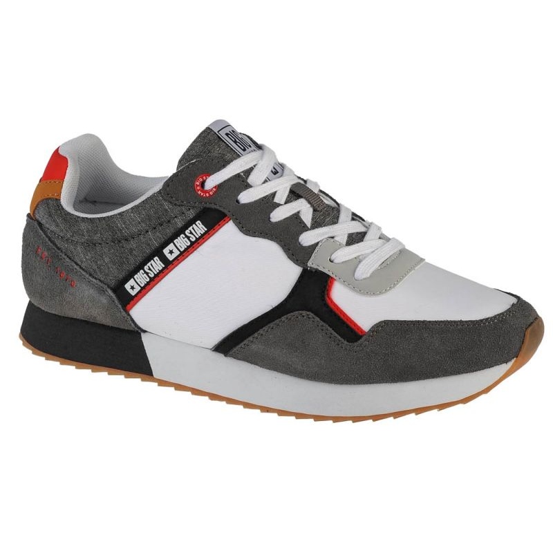 Moderní boty s nízkými pánskými botami Big Star Shoes M JJ174147 V bílé barvě s šedými akcenty. Horní svršek s prodyšnou pletivou a dobře -absorbovaným podrážkou zaručuje pohodlí nošení každý den - ideální pro městský životní styl a lehké sporty (životní styl).