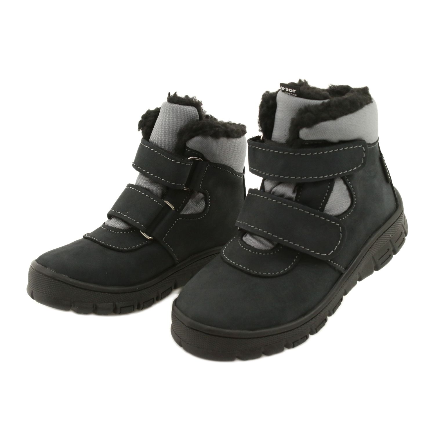 Kozačky Mazurek 1360 s membránou v antracitové barvě jsou ideální volbou pro aktivní kluky, kteří si cení pohodlí a bezpečí. Tato dětská obuv vyrobená z kvalitní přírodní kůže v kombinaci s materiálem v módním odstínu černé s nádechem námořnické modři zajišťuje nepromokavost a správné podmínky při zimních procházkách.