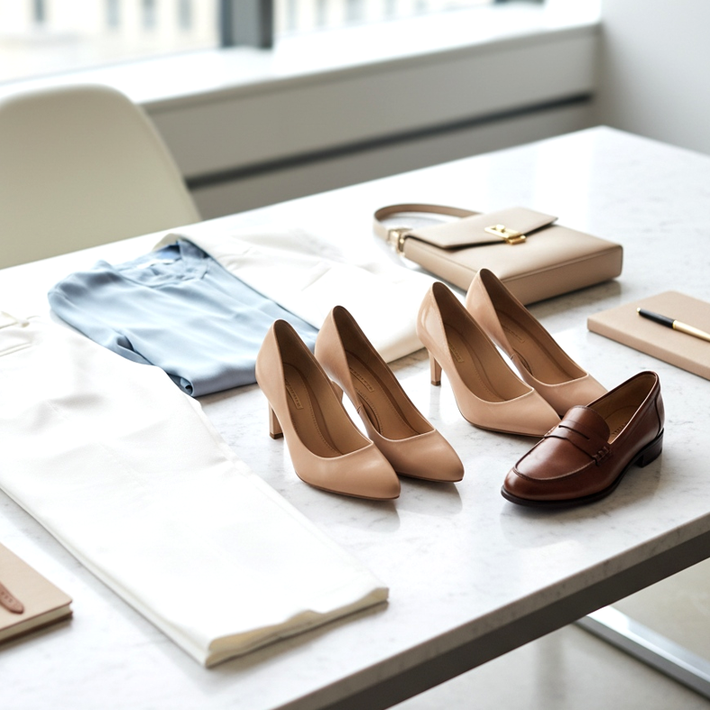 Klasické béžové lodičky s bílými cigaretovými kalhotami a vypasovaným sakem jsou receptem na dokonalý kancelářský styling. Nízký nebo střední jehlový podpatek dodá eleganci bez přehnaného formalismu.