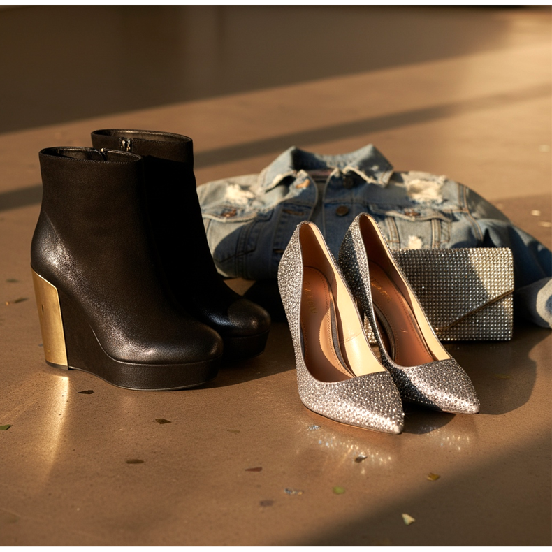 Perfektním řešením budou vysoké podpatky v tlumených barvách, které doladíte ke zbytku outfitu. Pokud se chystáte na večerní párty, můžete zvolit modely s nápadným zdobením – například s krystaly nebo metalickými akcenty.