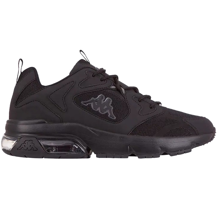 Boty Kappa Yero (243003 1111) - Universal, Black trénink a životní styl, kombinující pohodlí a moderní design. Světelná pěnová fylonská podešev s viditelným airbagem a odolnou proti otěru zajišťuje vnější vrstva gumy a trvalé adhezi. Textilní svršek se syntetickými výztužemi zaručuje prodyšnost a stabilitu během každodenního používání a tréninku.