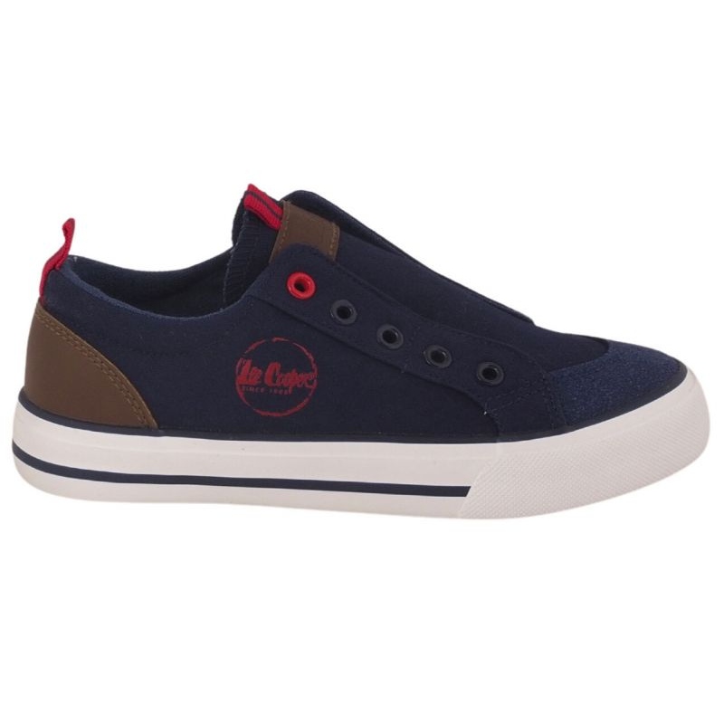 Boty Lee Cooper LCW-24-31-2279K v Navy Blue je ideální volbou pro aktivní chlapce. Tyto posuvné tenisky jsou vyrobeny z odolné tkaniny, což zajišťuje odolnost a pohodlí nošení. Kontrastní bílá podešev nejen přidává styl, ale také zaručuje stabilitu na různých površích, což z nich činí ideální pro hraní na hřišti nebo každodenní dobrodružství ve škole.
