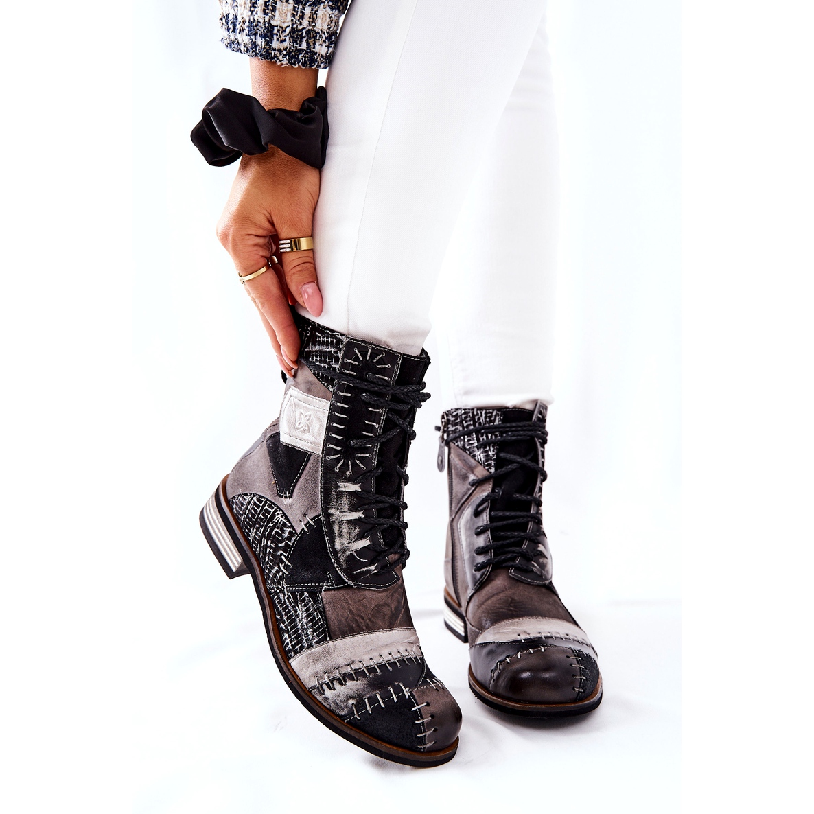Maciejka Boty Maciejka Grey Leather Jodhpur 05095-03 černá šedá