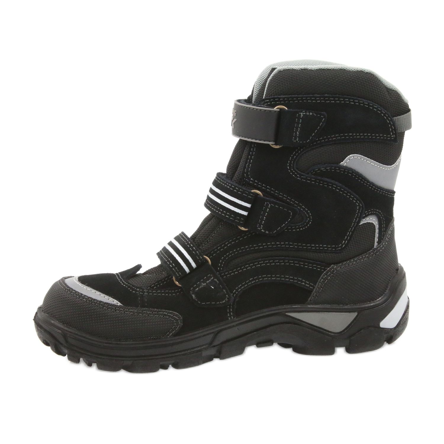 Černé kozačky s šedými akcenty jsou nejen stylové, ale i praktické. Vyrobeny z přírodní kůže a textilního materiálu, zaručují dostatečné odvětrávání, zateplený vnitřek s kožíškem účinně chrání před mrazem. Snadné nazouvání díky suchým zipům, děti si je budou moci samy plánovat, což rozvíjí jejich samostatnost.