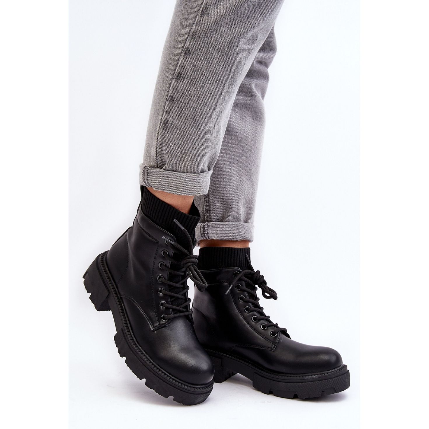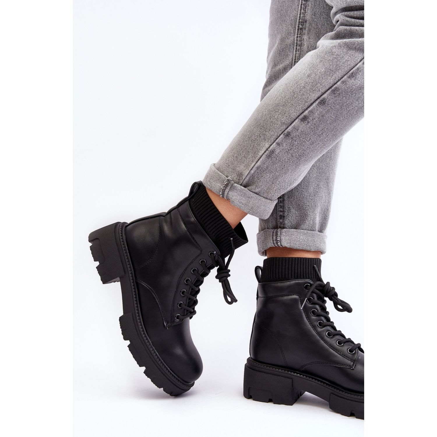 Trappery jsou zabudovány do pevné ploché paty 5 cm a platformy 3 cm, což zajišťuje stabilitu a pohodlí za všech podmínek. S horním dosahem 15 cm tento model dokonale chrání kotníky a vložený řez s klasickým šněrováním vpředu jim dává charakter. Zaoblené prsty a ztužené paty zdůrazňují nejen módní vzhled, ale také pohodlí nošení.
