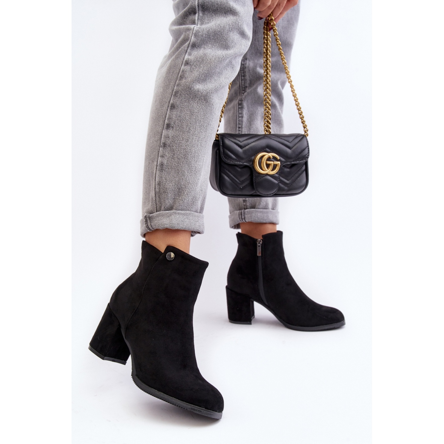 Boots Model Selel 23ZSSQ6936-11 Black z Step in Style je návrh pro ženy, které si cení elegance a pohodlí. Tyto klasické boty s vysokým pokojem kombinují moderní design s praktičností. Vyrobeny z vysoce kvalitního ekologického semiše, vypadají nesmírně stylově a jejich nadčasová černá barva vás snadno přizpůsobí různým stylům - od kalhot, přes sukně až po oblékání.