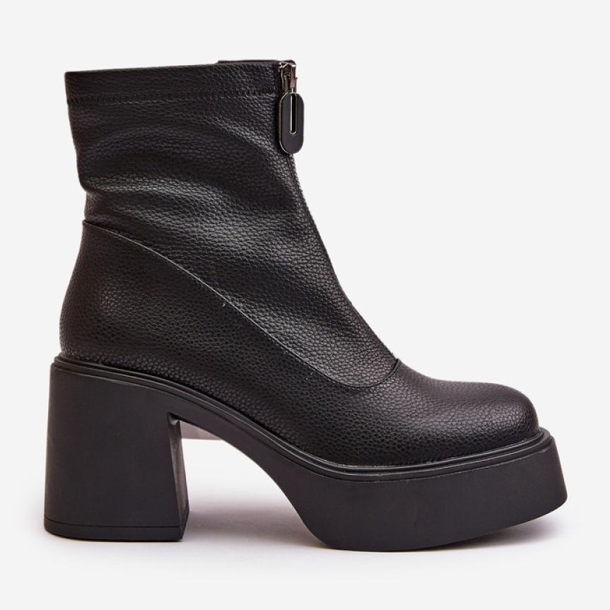 Jejich pevná platforma a pata ve formě příspěvku nejen přidávají eleganci, ale také zajišťují stabilitu a pohodlí při každodenním používání. Boty jsou pohodlně upevněny zipem, umístěným na boku, což usnadňuje oblékání. Další výhodou je dekorativní zámek vpředu, který dává botám jedinečný charakter.