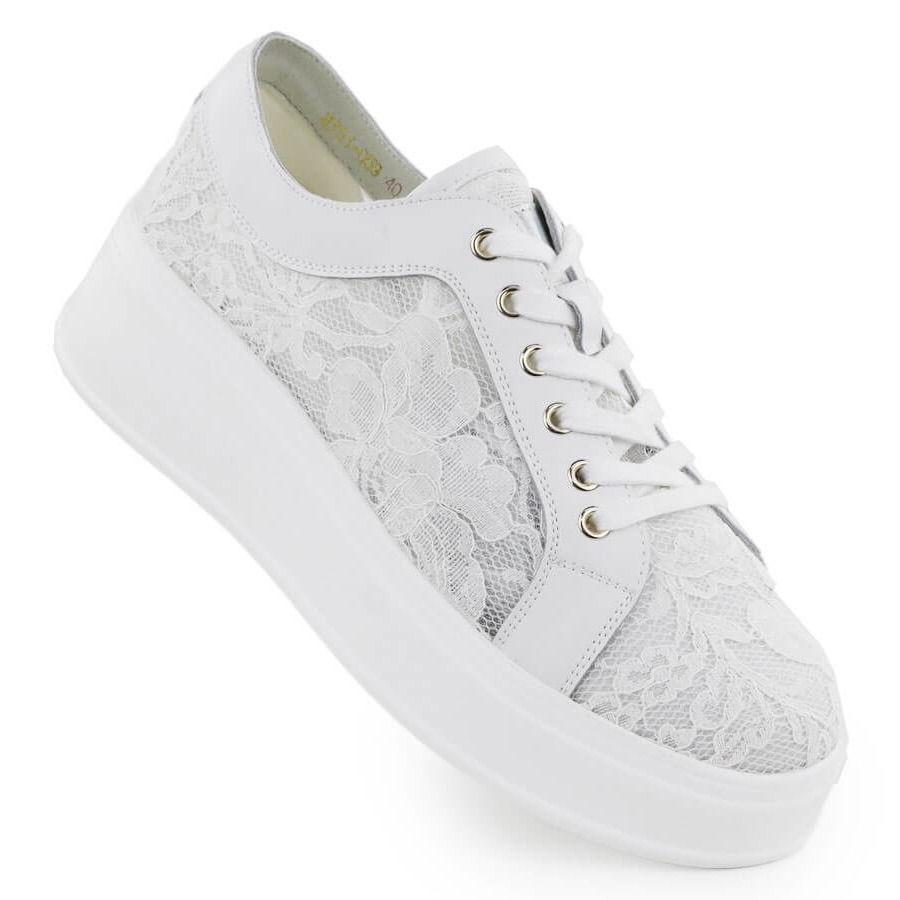 Tyto boty, které jsou na pohodlné platformě 4 cm, jsou skvělé pro příležitostné i formálnější stylizace. Krajkový detail jim dává speciální kouzlo a bílé barvy jim způsobují, že se vejdou téměř všechno.