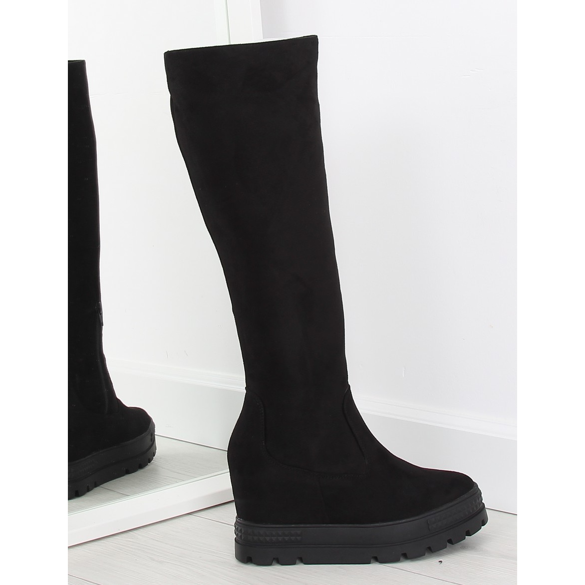 Představujeme černé kozačky na klínku, které se stanou nepostradatelným prvkem vašeho zimního šatníku. Tyto elegantní dámské sněhule, které se vyznačují vysokým 9 cm klínem a 3,5 cm platformou, spojují styl s pohodlím. Pevná podrážka s chráničem skvěle izoluje od chladné země, díky čemuž jsou perfektní v chladnějších dnech.