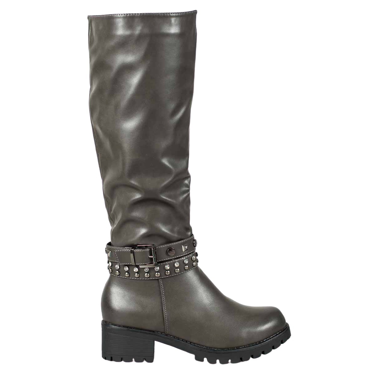 Kozačky mají pevnou, syntetickou podrážku s 2 cm vysokou platformou a 5 cm vysokým blokovým podpatkem, díky čemuž jsou nejen stylové, ale také pohodlné pro vaše nohy každý den. Další výhodou jsou ozdobné pásky se sponou kolem kotníku, zdobené módními kamínky, které botám dodávají charakter a moderní vzhled.