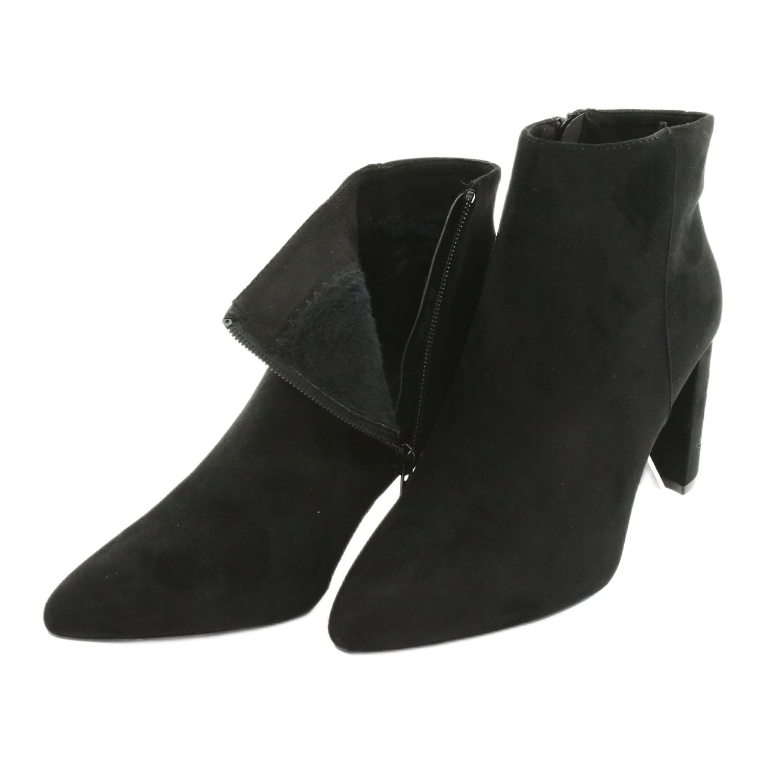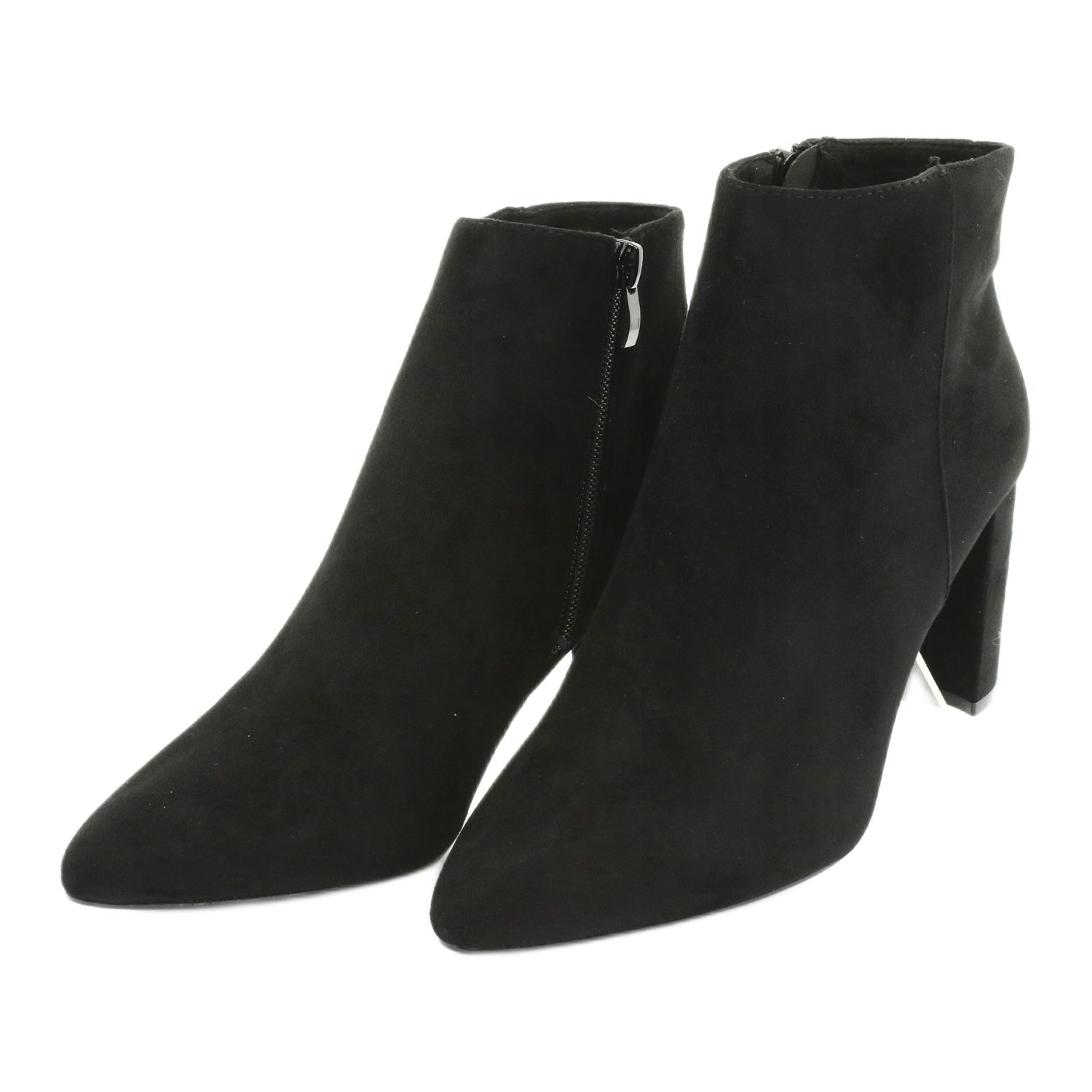 Kotníkové boty Sergio Leone, vyrobené z vysoce kvalitní ekologické semišové kůže, potěší sytě černou barvou a pečlivým zpracováním. Úzký 8 cm podpatek a subtilní špička modelu dodávají elegantní nádech každému stylingu. Díky vnitřnímu zateplení tyto kozačky nejen skvěle vypadají, ale také poskytují pohodlí a teplo v chladnějších dnech.