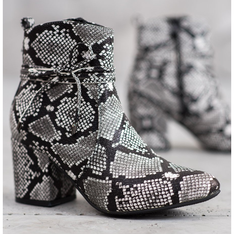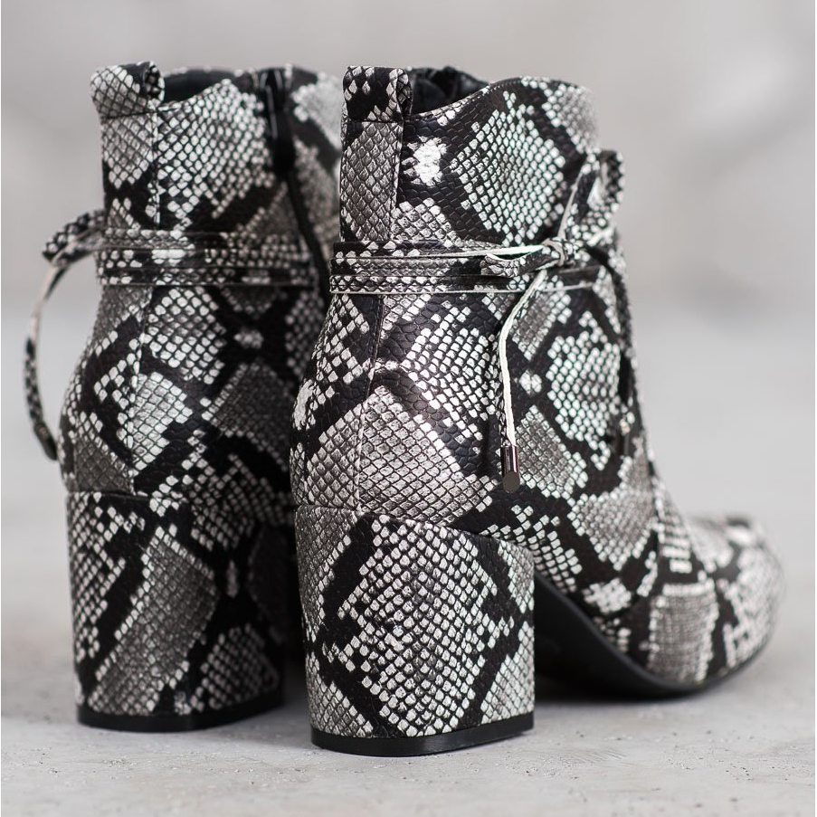 Kotníkové kozačky s praktickým zipem na vnitřní straně zajistí snadné nazouvání a vyzouvání. Jejich originální vzor se zvířecím motivem dodá charakter každému stylingu a díky výšce podpatku 7 cm jsou pohodlné i při delší chůzi.
