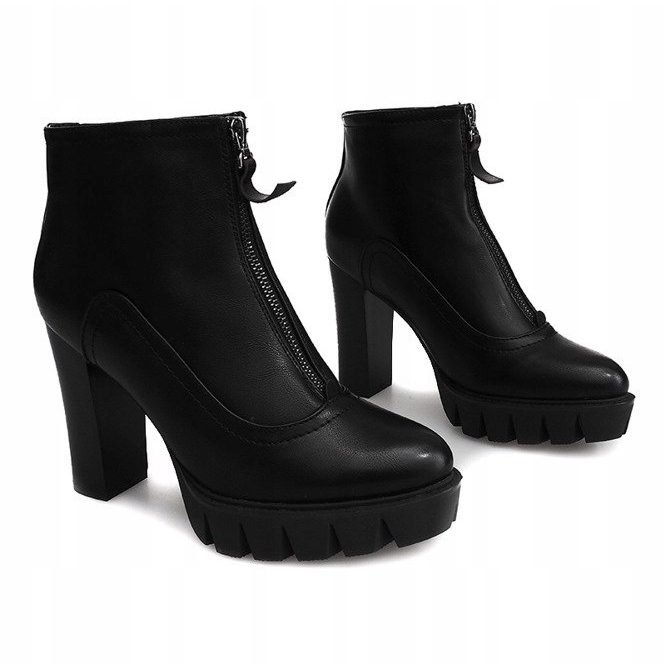 Černé kotníkové boty Zipper 1512-2 na vysokém podpatku jsou dokonalou kombinací elegance a pohodlí, která se bude skvěle hodit ke každému dámskému stylingu. Vysoký sloupek o výšce 10 cm a klínek o výšce 3 cm zajistí nejen atraktivní vzhled, ale i komfort nošení, a to i po mnoho hodin.