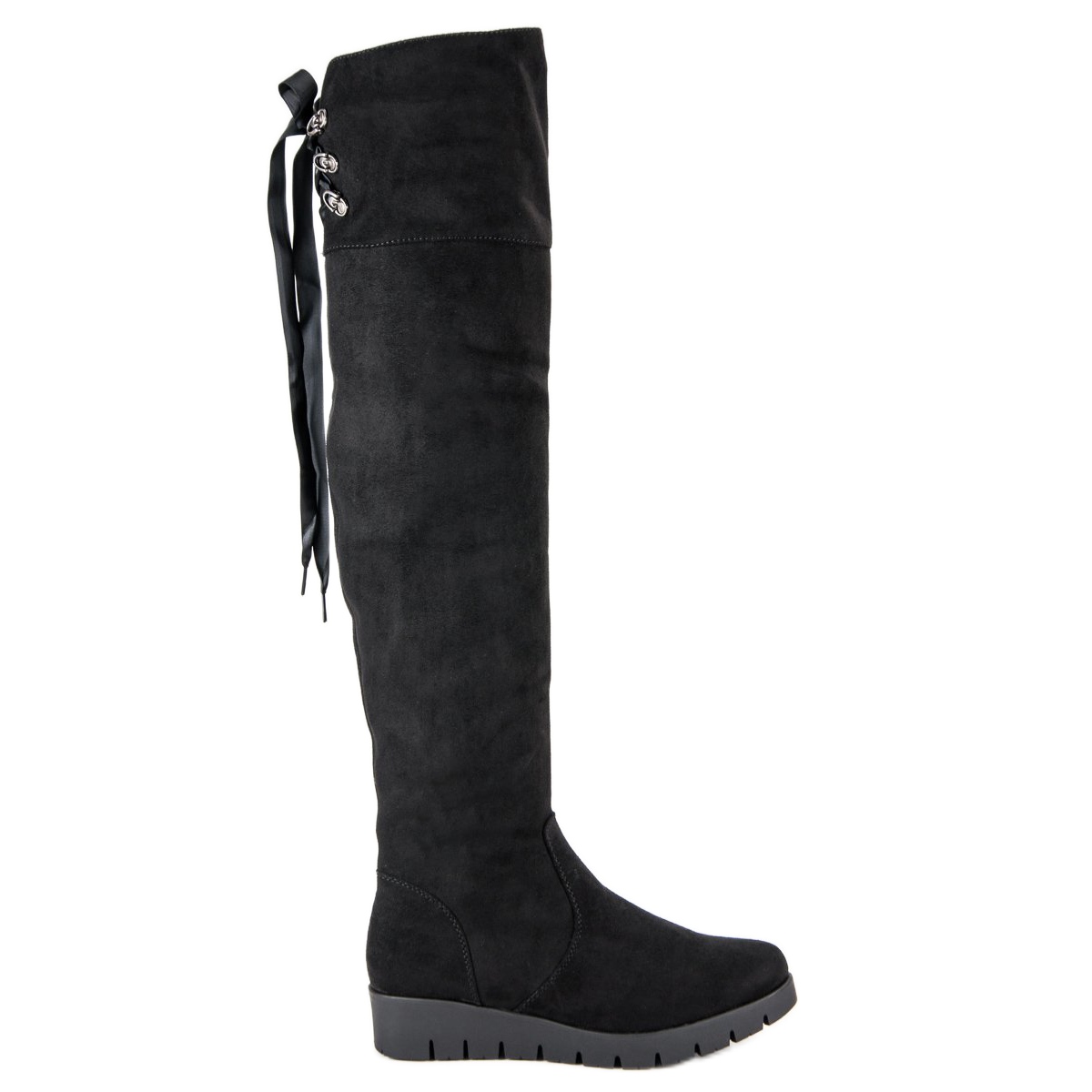 Vysoký svršek sahající nad kolena (54-55 cm) krásně obepíná nohu a jemný 3 cm klínek zeštíhluje lýtko. Díky měkké kožešinové izolaci vás tyto boty zahřejí i v těch nejchladnějších dnech. Pohodlné zapínání kombinující zip a šněrování usnadňuje nazouvání a přizpůsobení noze.