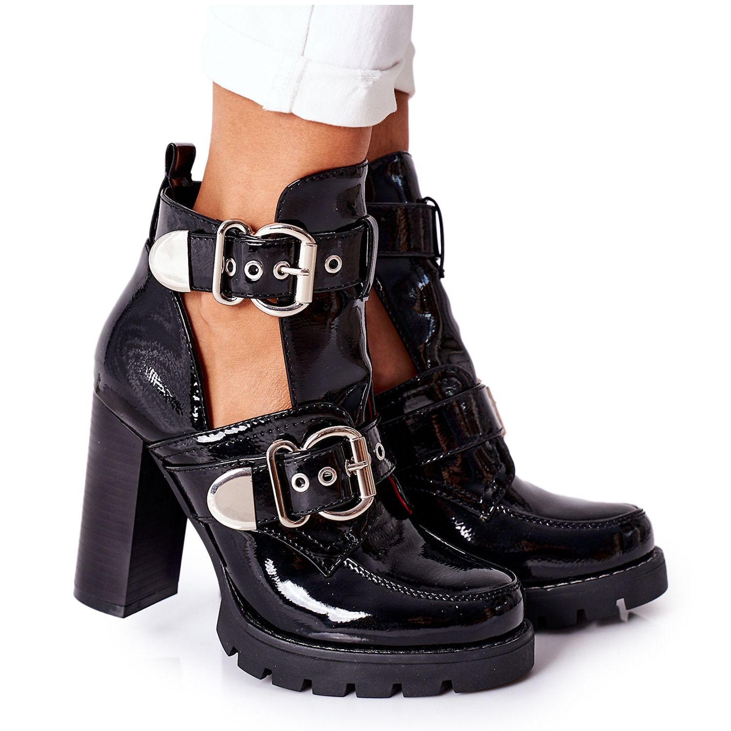 Boty na sloupku Černá lakovaná přezka Bramshall černý