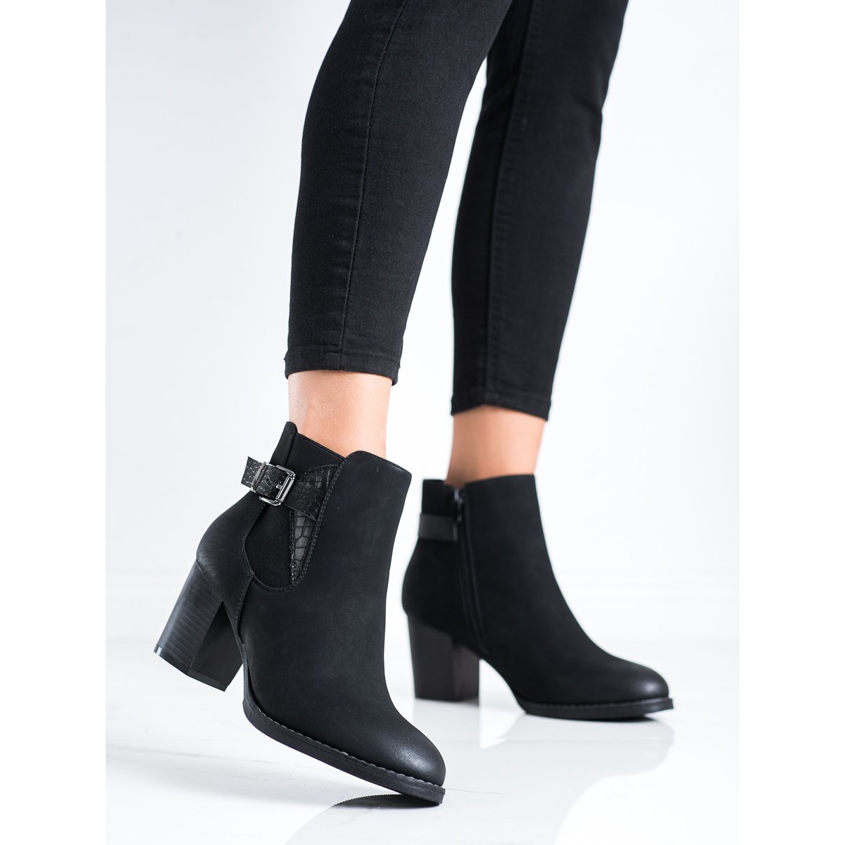 Objevte eleganci a pohodlí díky kotníkovým botám na vysokém podpatku s ozdobnou přezkou od výrobce J. Star. Tyto stylové černé kotníkové boty jsou perfektní volbou pro ženy, které chtějí kombinovat ležérní a elegantní styl. Vyrobeny z vysoce kvalitní ekologické kůže, potěší nejen estetikou, ale i komfortem nošení.